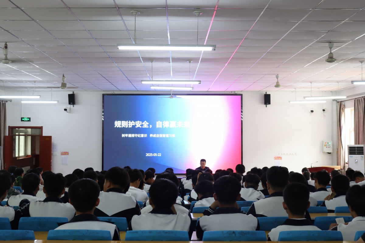 规则是青春的“护栏”,自律是人生的“引擎”。陈明结合马克思主义哲学理论,以《规则护安全 自律赢未来——树牢遵规守纪意识,养成自我管理习惯》为题引导学生们了解规则的重要性、规则与自由的关系以及违规违纪违法的代价与后果,同时与同学们探讨了行为追踪表、情绪日志等帮助增强规则意识,提高自律管理的具体方法,这堂课不仅是一次纪律教育,更是一场关于成长、责任与未来的对话。